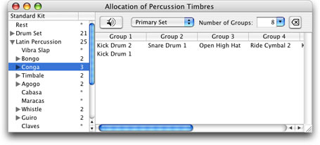 You can add one or more timbres from the names of timbres listed in the left column by drag & drop operation. The names of timbres are categorized into several types. If you drag & drop a name of category, all of timbres under it are added in the oder of listed. If you select the listed names, the button with speaker icon at the upper row of the window is enabled to examine the sound.