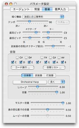 タブを使って、エージェントが奏でる音楽のパラメータを変更することができます。