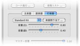 打楽器タブの中にある 音量(主) のスライダーは