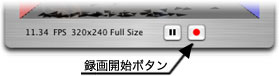 下図のウィンドウの下半分にあるボタンは保存するムービーの属性を指定するものです。 映像圧縮方法 ... と書かれたボタンをクリックすると、 QuickTime でサポートされる映像の圧縮方式とそのパラメータを指定するウィンドウが表示されます。 記録するメディアとして 映像、音楽、こちらの音声、相手側からの音声 を選ぶことができます。相手側からの音声 の項目は、 群れメッセンジャー の機能が動作しているときにだけ有効になります。
