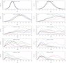 平均値による結果は,特に感染者数が多い場合では連続値を仮定した数理モデルに基づくものと同様の推移を示しているが,各シミュレーション過程を見ると,感染者数が少ない場合には,大きな揺らぎがある。 以下の図にすべてのシミュレーション過程を列挙する。