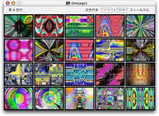 SBART は2次元CG画像の作成を支援する システムです。カール・シムズさんが人工進化という名前で提案した 人為選択に基づく進化の方法に基づいています。